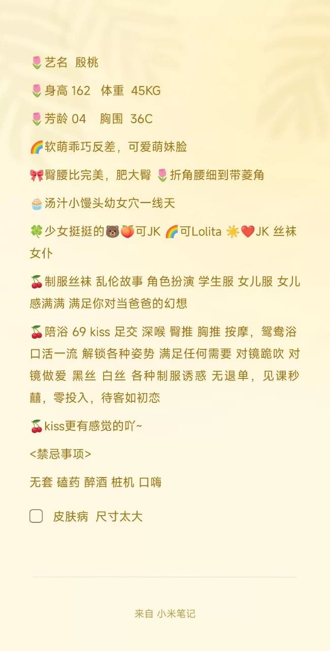 服务项目: 口爆,胸推,69,莞式,深喉,冰火,丝袜,制服,艳舞,